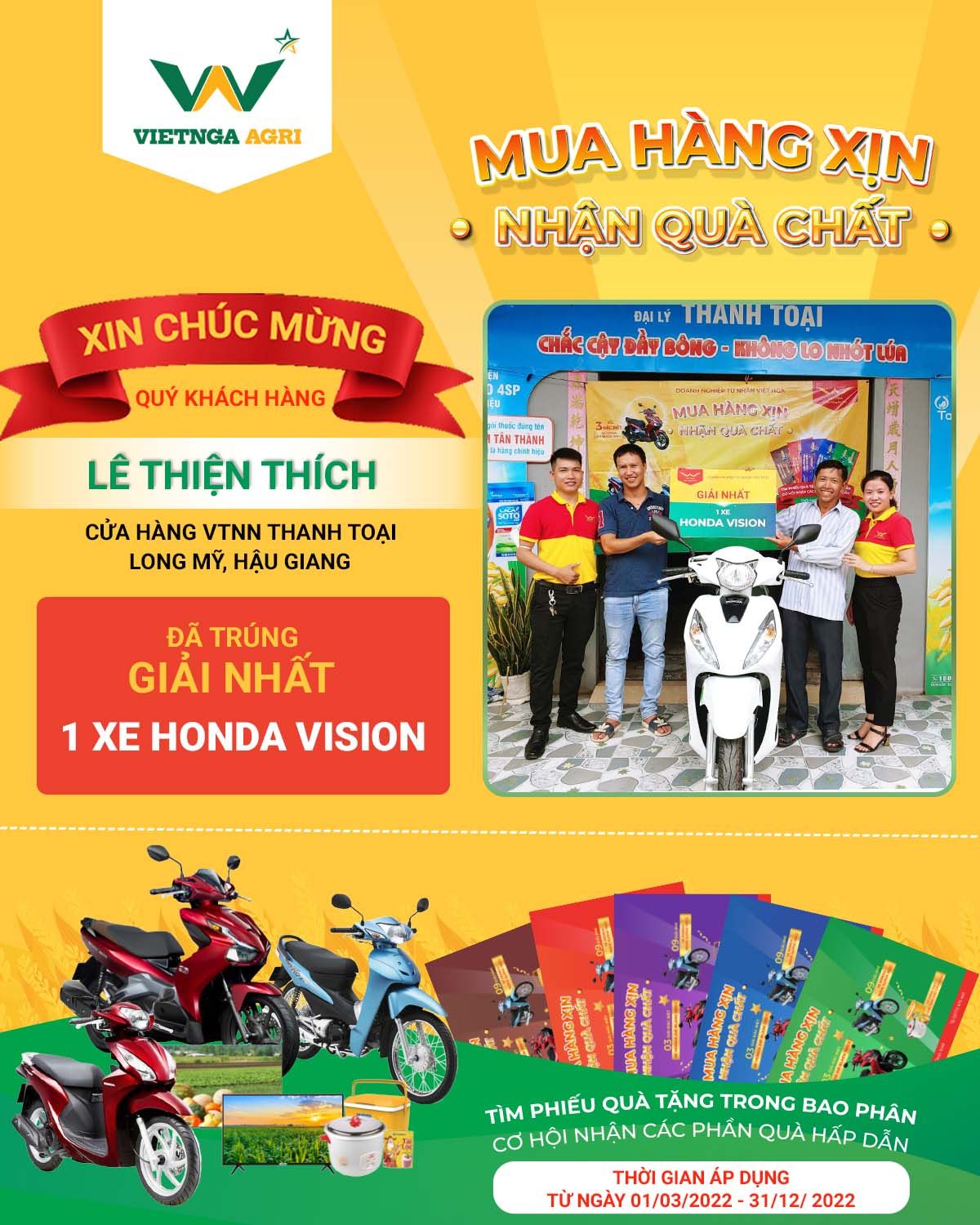 ️Xin chúc mừng anh Lê Thiện Thích tại Hậu Giang đã trúng Giải Nhất: 1 xe Honda Vision trong chương trình Mua hàng xin – Nhận quà chất.