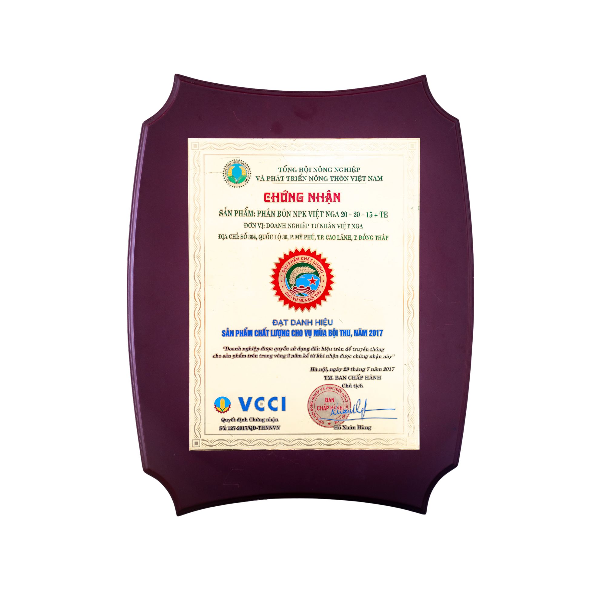 Thương hiệu Vàng Nông nghiệp Việt Nam 2017