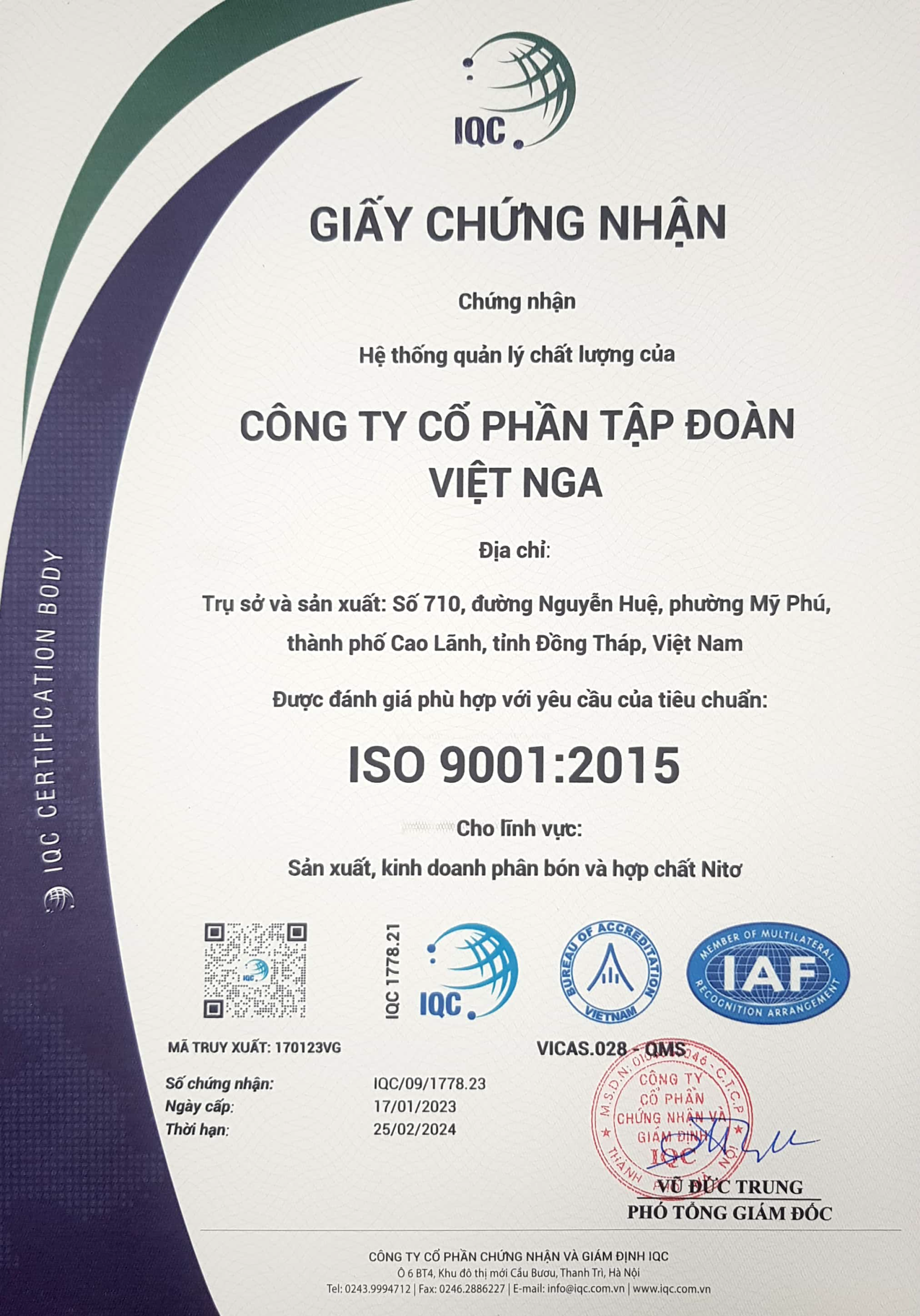 Chứng Chỉ ISO 9001:2015 Về Hệ Thống Quản Lý Chất Lượng