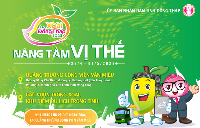 Với chủ đề “Xoài Đồng Tháp – Nâng tầm vị thế”, Lễ hội Xoài Đồng Tháp 2023 sẽ diễn ra từ ngày 28/4 đến ngày 01/5, tại Quảng trường Công viên Văn Miếu.