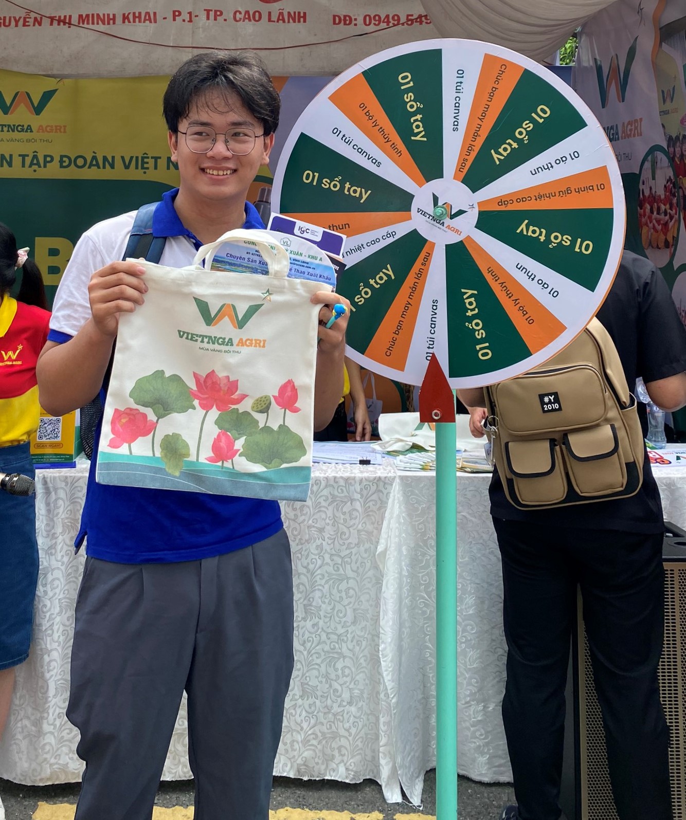 Ngoài những hoạt động tư vấn, nộp hồ sơ ứng tuyển thông thường, Phân bón Việt Nga còn chuẩn bị những trò chơi trúng thưởng dành cho các bạn sinh viên với nhiều phần quà hấp dẫn như: bình giữ nhiệt, áo thun, ly thủy tinh, túi canvas, sổ tay,…