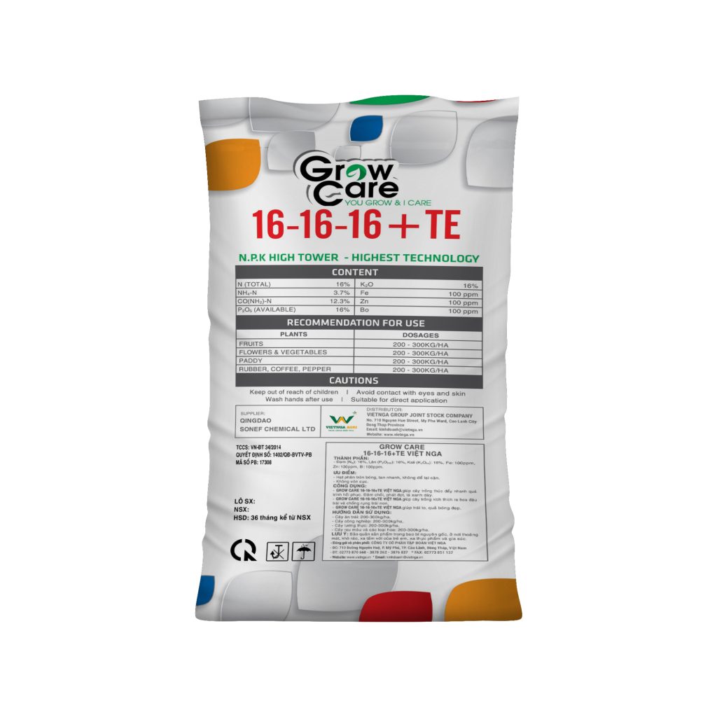Phân bón NPK 16-16-16+TE thường được sử dụng để cung cấp một tỷ lệ cân đối của Nitơ, Phốt pho, và Kali, giúp cho cây trồng phát triển đồng đều và đạt được năng suất tốt. Loại phân bón này thường được sử dụng cho nhiều loại cây trồng khác nhau, từ rau cỏ, cây hoa, cây công nghiệp cho đến cây trồng lương thực.